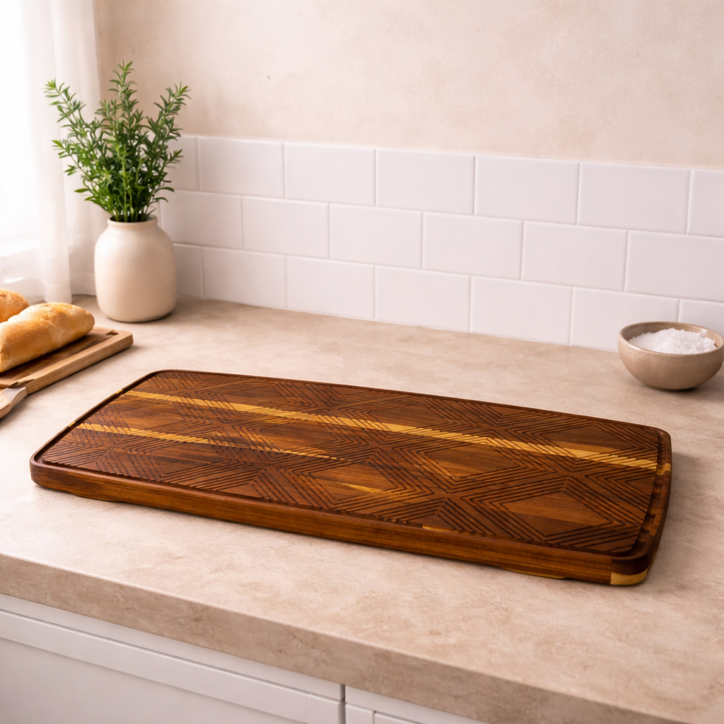 Com acabamento impecável e um desenho geométrico sofisticado, essa peça se destaca pela sua beleza natural e pelos detalhes que valorizam qualquer composição, seja na cozinha, sala ou área gourmet.