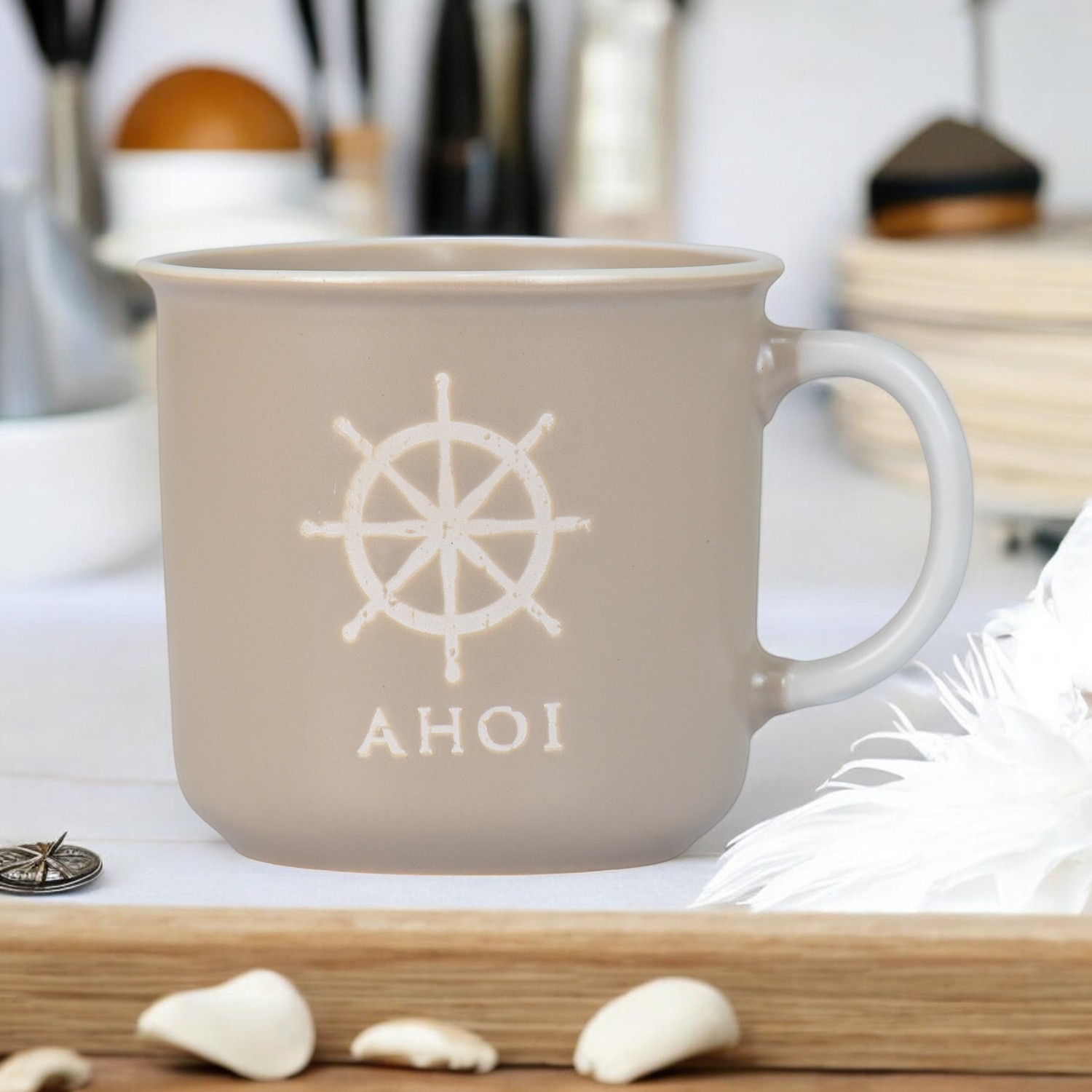 Caneca Ocean Bege Com Timão em Cerâmica