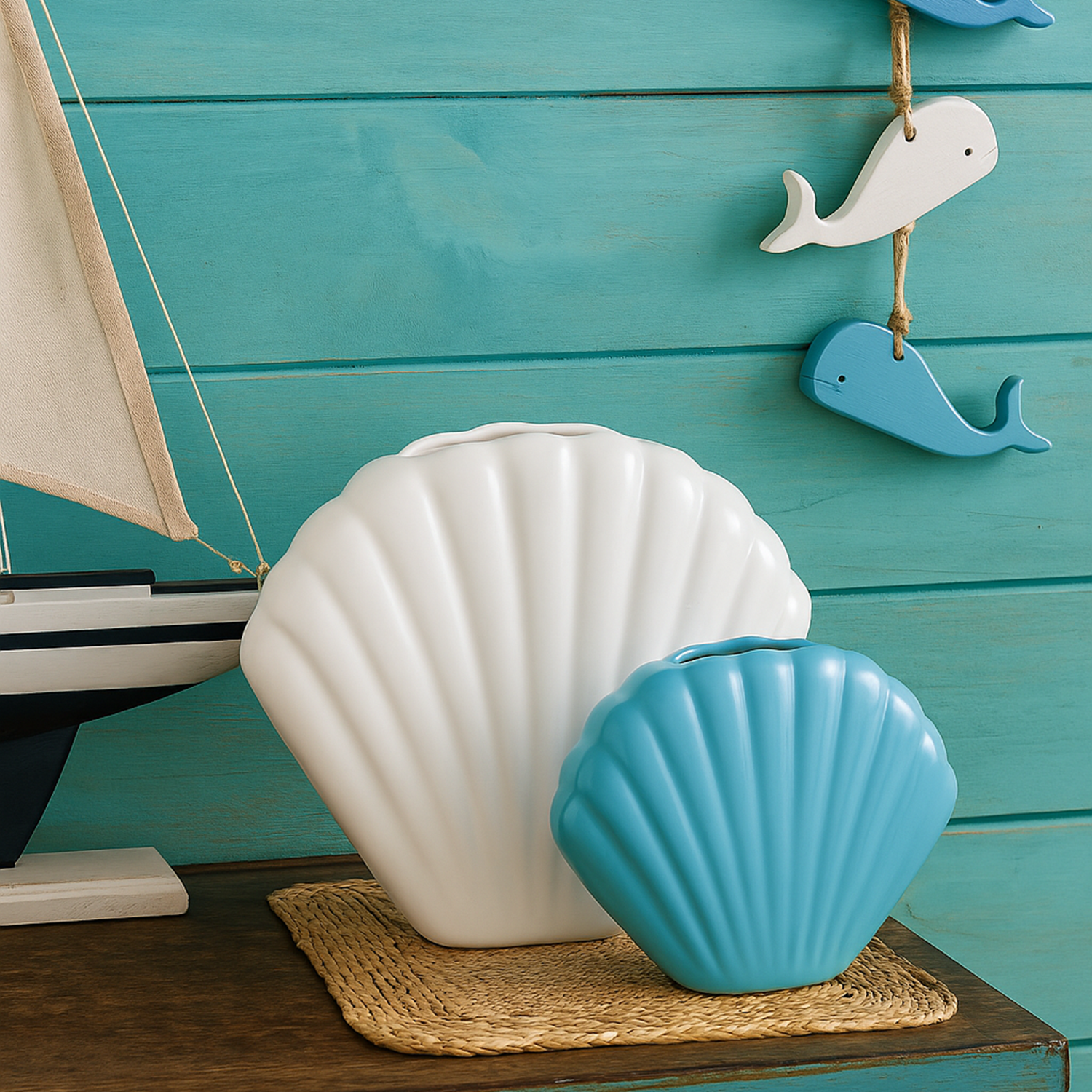 Vasos em cerâmica no formato de concha, perfeitos para compor uma decoração com estilo praiano e leve. Disponíveis em tons suaves que trazem frescor e elegância ao ambiente.