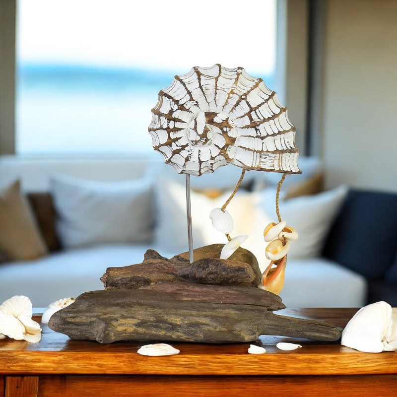 Enfeite Pedestal Concha Branca com Conchinhas em Madeira