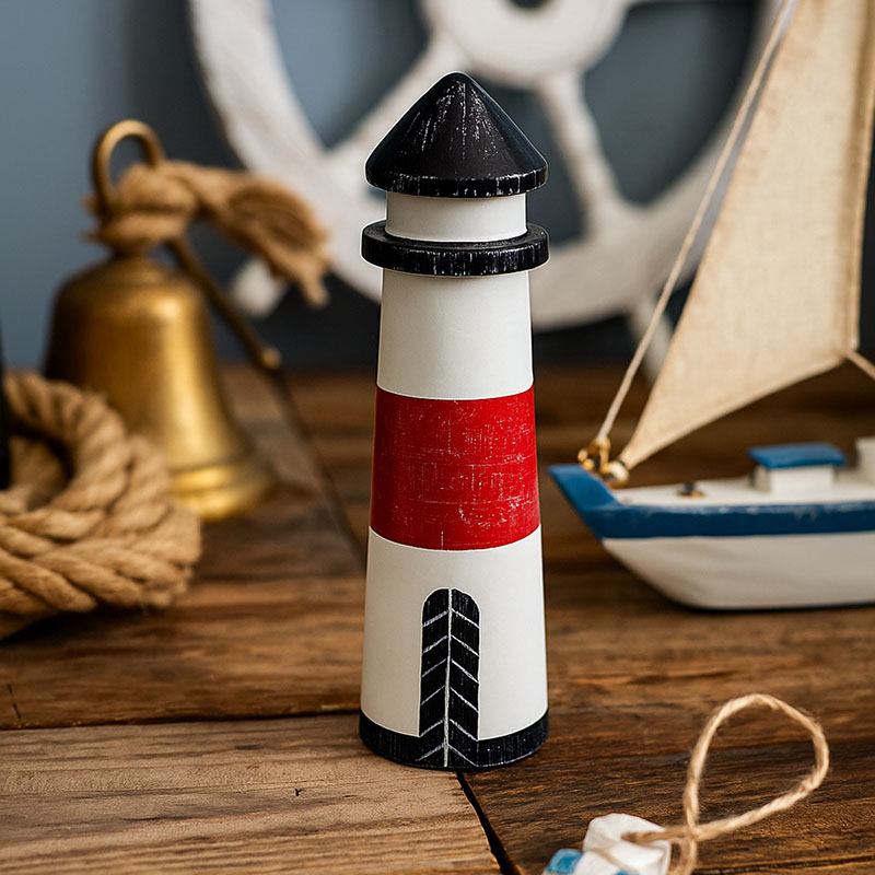 Charmosos faróis decorativos feitos em madeira, com acabamento rústico e detalhes pintados à mão. Ideais para compor ambientes com estilo praiano ou náutico, trazem aconchego e personalidade para prateleiras, aparadores ou mesas.
