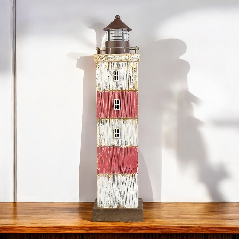 Sendo um dos símbolos náuticos, o farol deixará sua decoração delicada e bonita. Confeccionado com madeira de excelente qualidade, possui LED na parte superior, o que dará um toque de sofisticação ao cômodo. Ótimo para qualquer ambiente, com acabamento rústico e pintura a mão, funciona com 2 pilhas AA.
