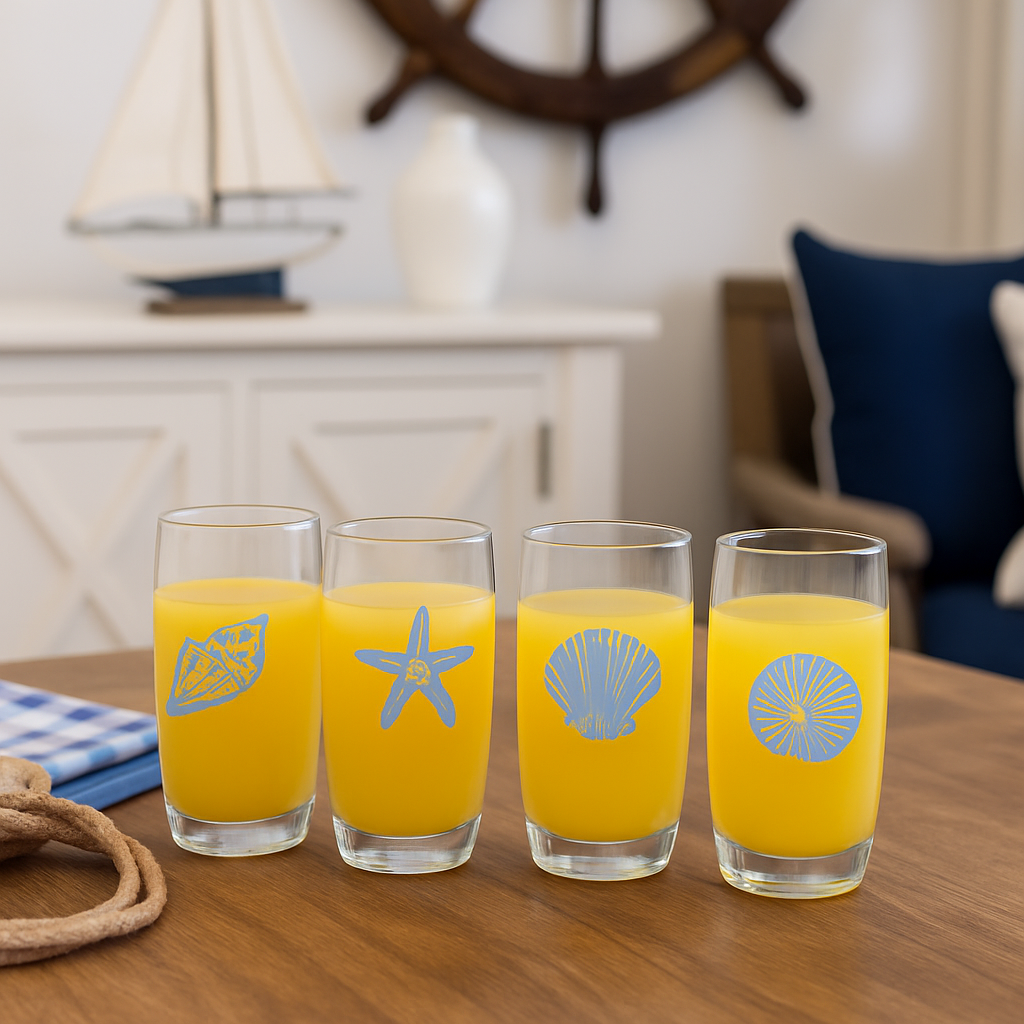 Jogo C/4 Copos Estampa Conchas