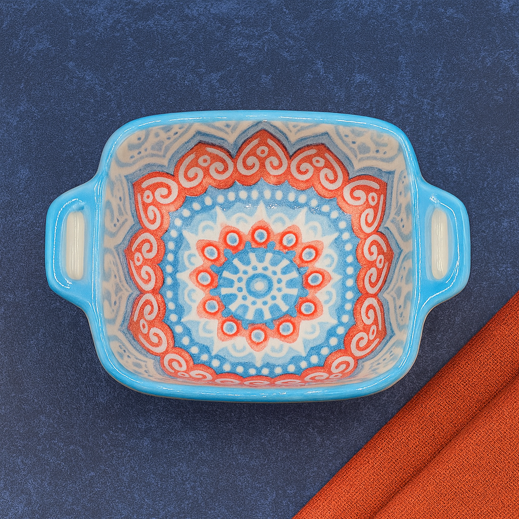 Molheira De Cerâmica Com Alças Vermelho/Azul