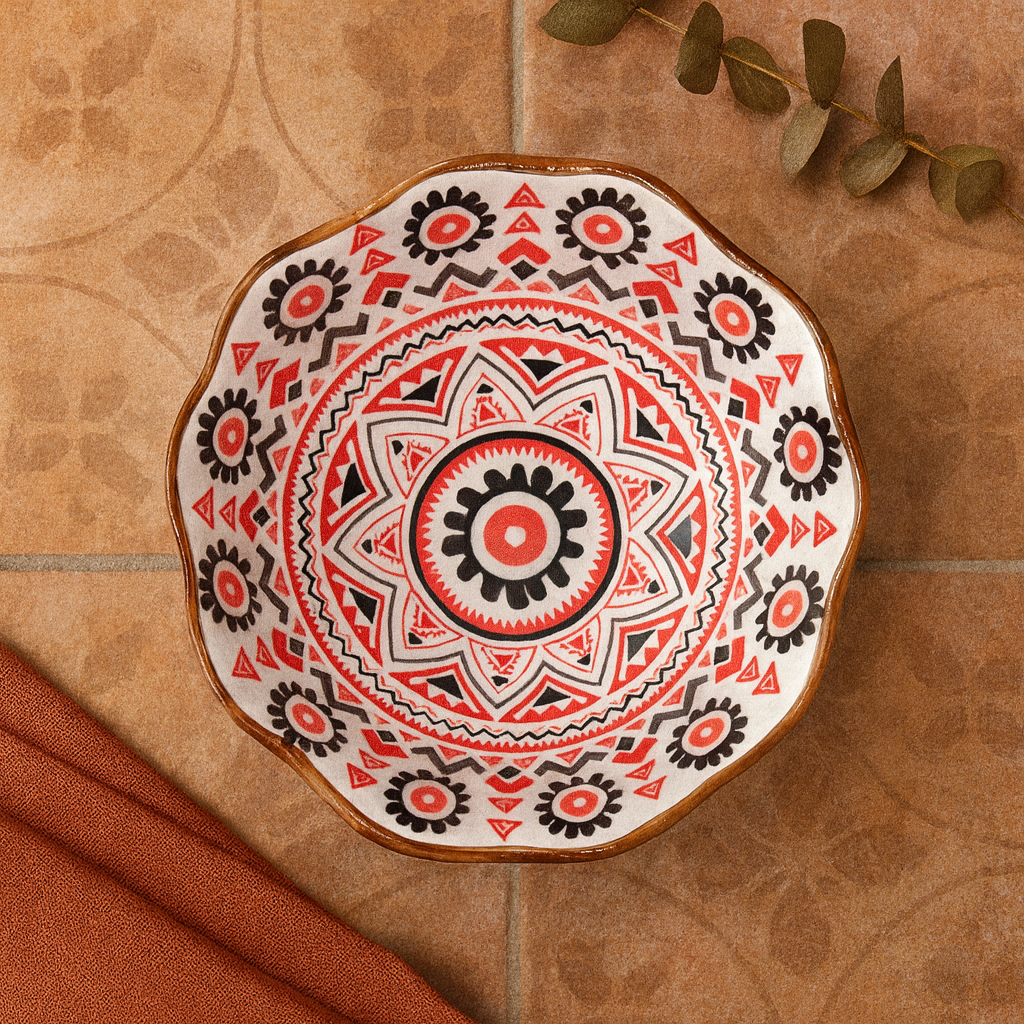 Molheira De Cerâmica Formato Petalas Vermelho/Preto