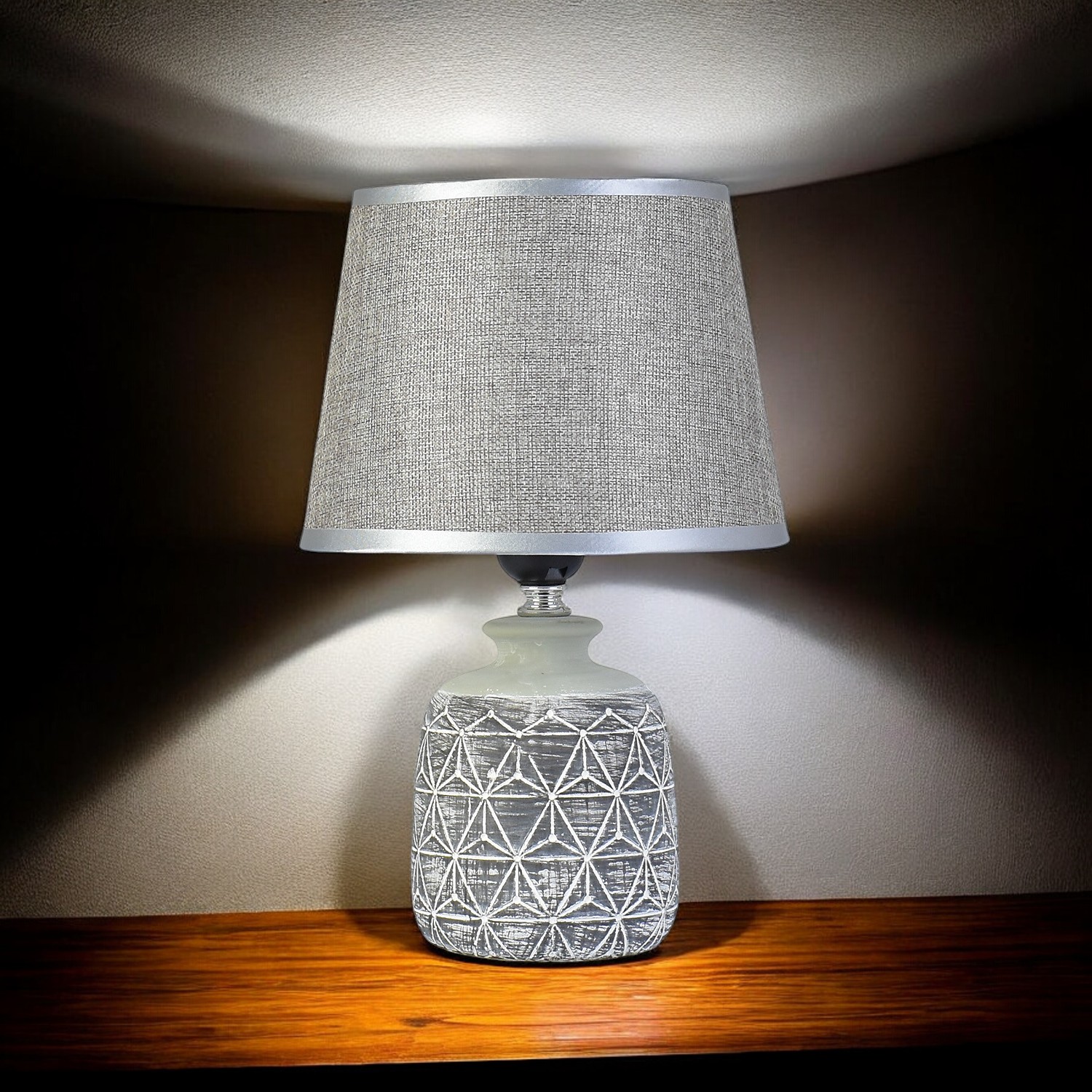 Abajur Padrão Cinza Triangulos em Cerâmica