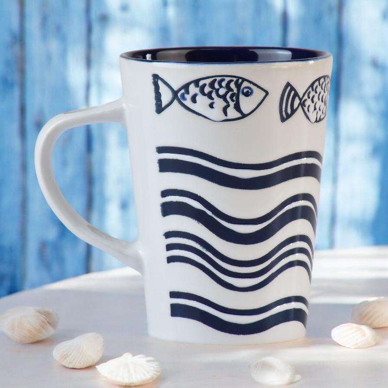 Caneca Náutica Mar Peixes com Suporte para Colher