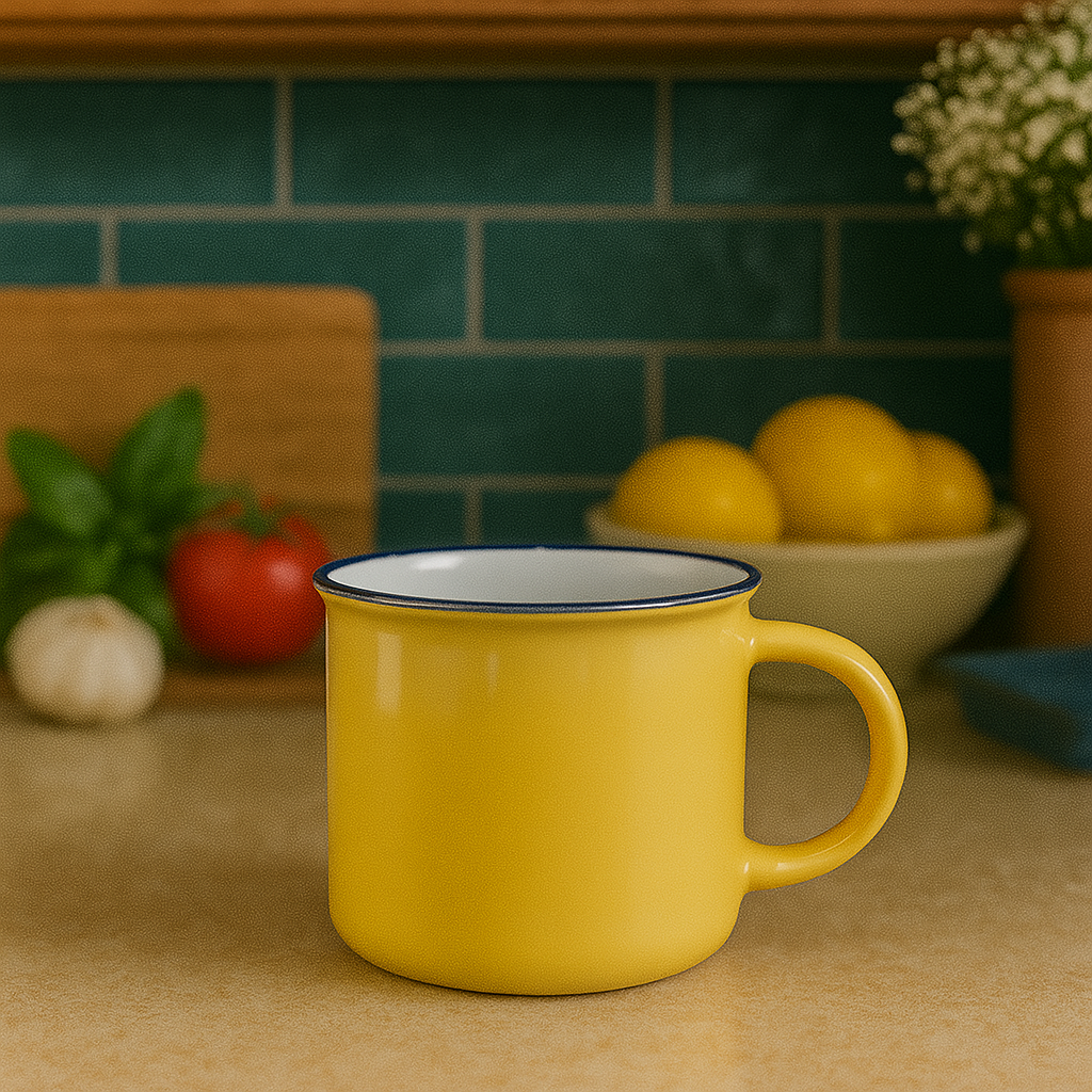 Xícara Cerâmica Com Borda Amarela