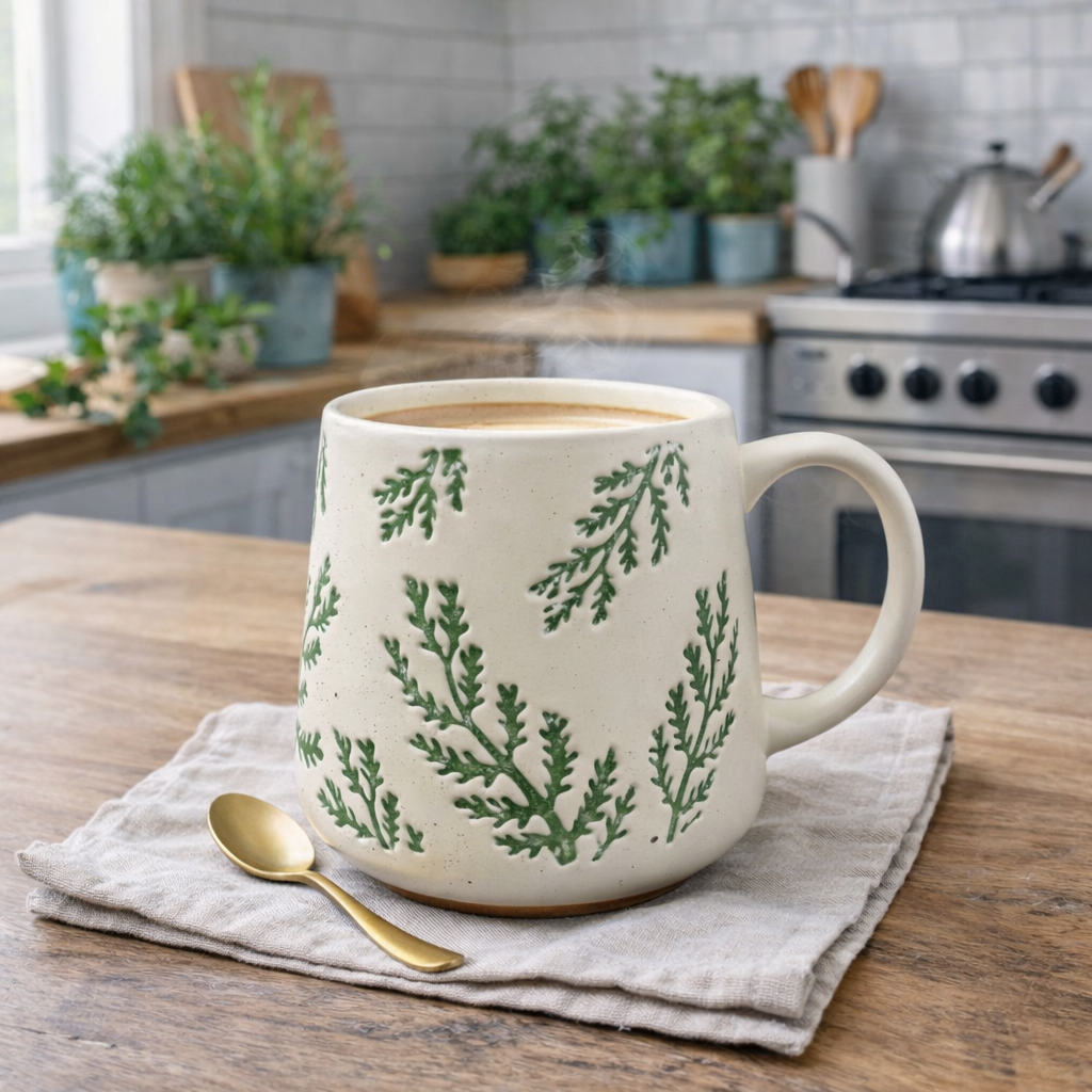 Xícara Cerâmica Flores Verde