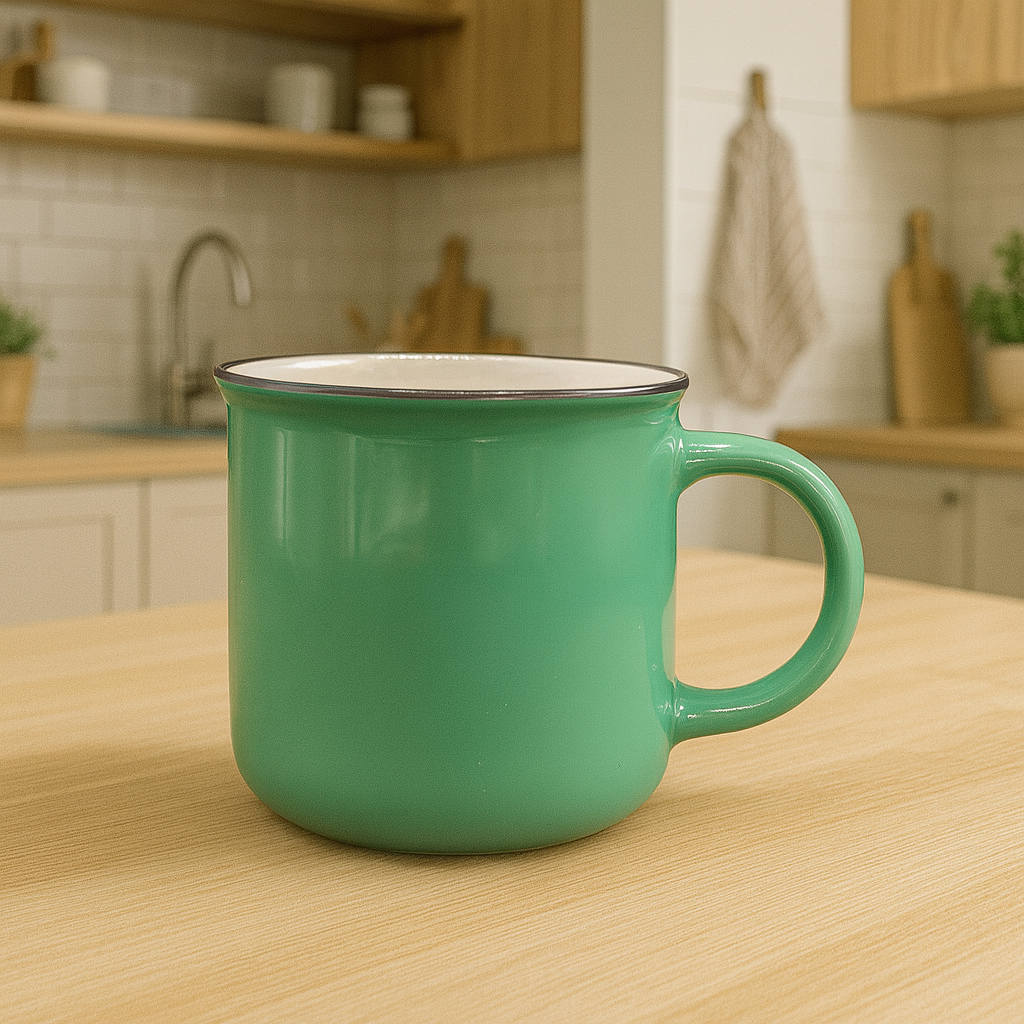 Xícara Cerâmica Verde Com Borda Preta